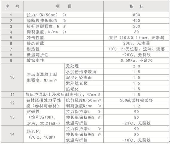 高分子自粘防水材料是用高分子片材(TPO)涂以非沥青自粘胶料,覆隔离膜,而生产的具有高分子防水材料和自粘双重效果的新型防水材料;该材料集高分子防水卷材和自粘卷材优点于一身,大大提高了抗穿刺、耐候、自愈、耐高低温等性能,物理性能更优异,化学性能更稳定;新型的高分子自粘防水卷材能够与混凝土结构层粘结为一体,中间无窜水隐患;即使卷材局部遭遇破坏,又基本上被混凝土结构堵塞,从中可以看出:即使不完美的卷材防水层和同样不完美的混凝土结构层,互为藩篱,形成了完美的防水体系,大大提高了防水层的可靠性。