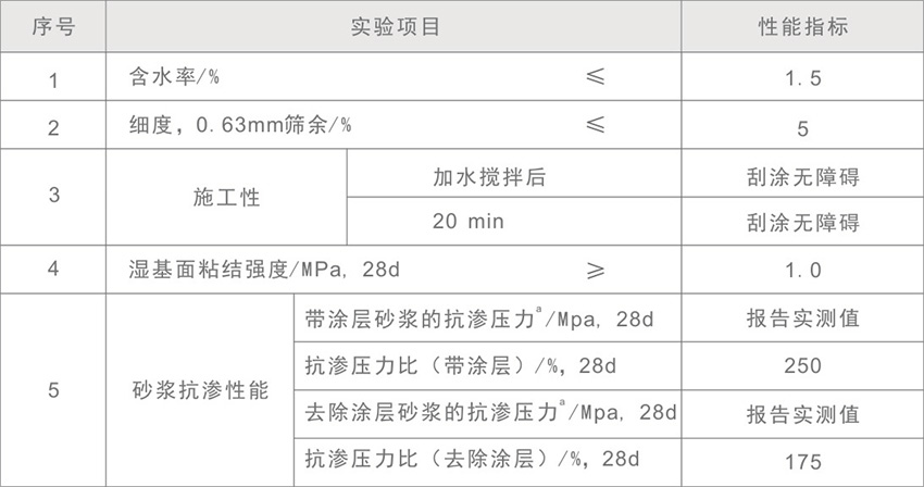 (4)磨去涂层砼体抗渗性良好—经检测,涂刷该材料的试块56天后磨去涂层,试块抗渗压力不小于0.8Mpa(注:试块执行GB 18445-2012标准)。