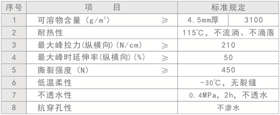 高聚物改性沥青防水卷材的物理力学性能指标符合TBT2965《铁路混凝土桥面防水层技术条件》的要求(见下表)