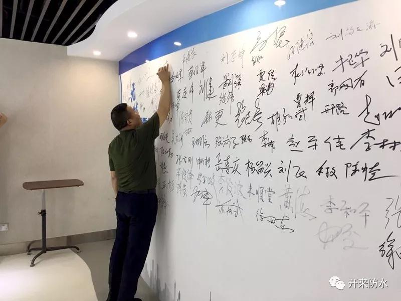赵会长说,早在几年前,在西安看到过开来湿克威的说明书,就感觉到开来是一家具有深厚文化底蕴的企业,之前也曾参观多家同行生产工厂,像开来湿克威这样整洁规范的厂容厂貌、中国元素--青花瓷系列的特色产品,一流的研发团队,今天一看开来名副其实。虽然之前跟倪总偶会有见面,但交谈不多。此次到访通过深入沟通,倪总是一个儒商并具有社会责任感的企业家。倪总不仅企业做的好,还在3.18发起成立了防水产业链平台,为防水产业链企业提供“链接”提升行业价值,重塑行业信用,为倪总点赞。