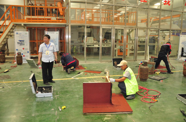 此次竞赛包括改性沥青防水卷材施工(单人赛)、高分子卷材施工(单人赛)、喷涂施工(双人赛)三项施工技能。