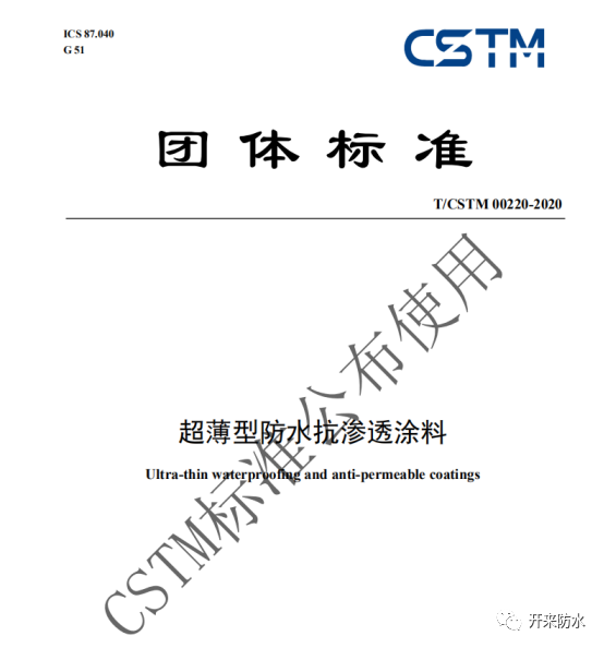 经中国材料与试验团体标准委员会(简称:CSTM标准委员会)化工材料领域委员会审查,CSTM标准委员会批准CSTM标准《超薄型防水抗渗透涂料》标准由江苏晨光涂料有限公司负责起草,参加标准起草单位有9家,上海开来湿克威作为一家集防水卷材、防水涂料、家装防水涂料、瓷砖胶、堵漏密封材料、沥青瓦、道桥专用防水材料、施工设备的研制、生产、销售、施工、技术咨询服务于一体,并具有自营进出口权的铠甲防水系统提供商参编了此次标准的起草。截止目前,上海开来湿克威共参与国家标准及图集27项,8项上海市级成果鉴定,4项上海市科技成果奖。