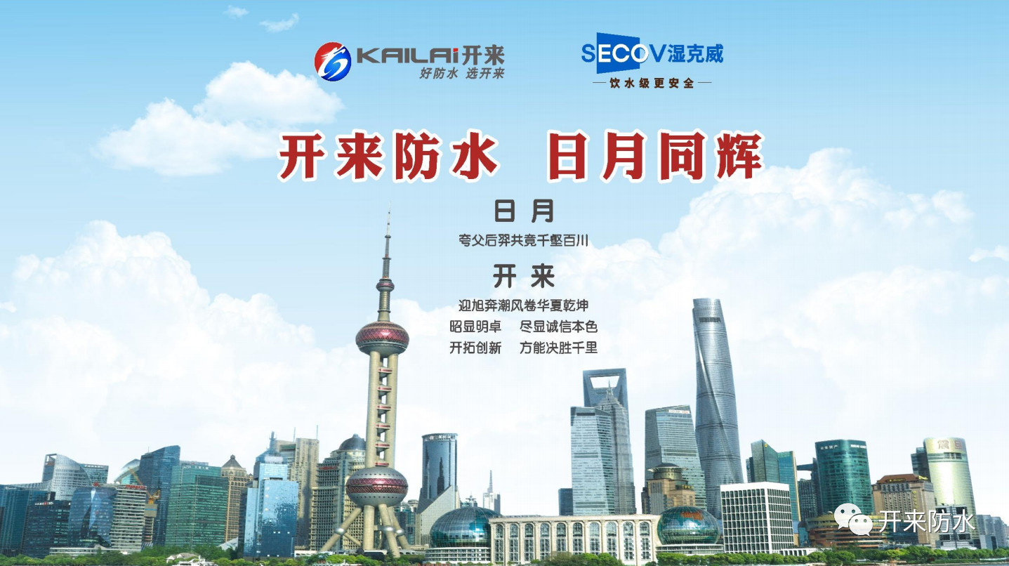 上海开来湿克威防水,始建于上海1993年,拥有华东和华中两大研发、生产基地,旗下有开来、SECOV湿克威、乐活、一宁四大品牌,一级资质,网络覆盖600座城市,出口日本、俄罗斯、越南、柬埔寨、科威特、吉布提、香港、澳门等国家地区。我们以呵护人类建筑安全为己任,通过“一个电话所有事情我来办”和“360°品控,全程品质可追溯”来践行防水全程无忧。