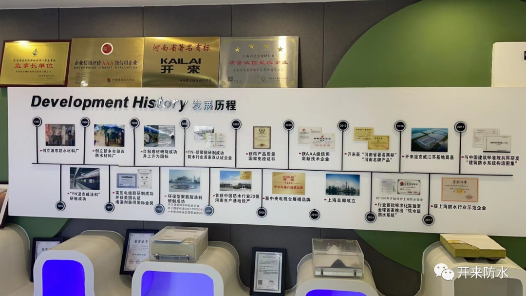 过去三年,开来湿克威在新材料领域中的防水材料的研发生产和应用技术积极开展研发活动,尤其是环保型和阻燃型防水材料的研发,取得一系列突破性成果: