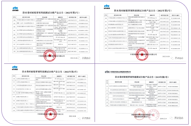 八款产品分别通过国家建筑材料测试中心的耐根应用性试验,被广泛使用于各种植屋面或种植类车库顶板工程中,为项目建设方提供更加方便的选材用材之便。