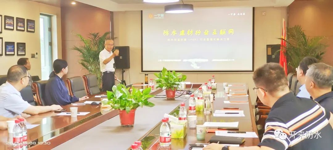 开来湿克威董事长倪贵全高工介绍了防水行业发展状况,汇报了一宁居&开来联合上市工作的推进情况,并详细汇报了防水行业数字化样板运营情况和防水产品质量溯源平台开发进度。