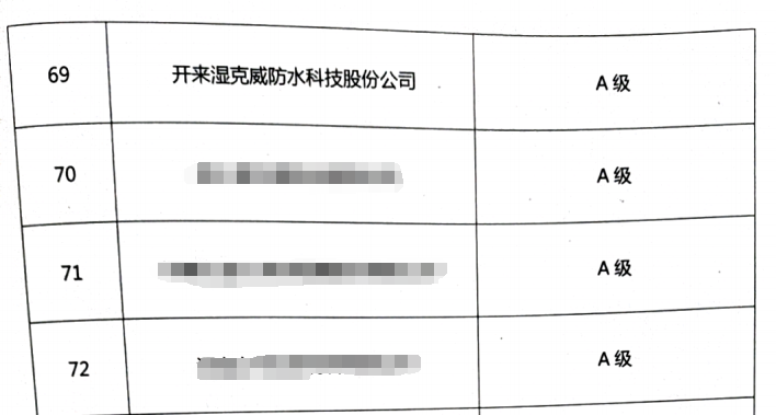 2024年9月9日,新乡县人力资源和社会保障局发布了“关于新乡县2023年度企业劳动保障守法诚信等级评价结果的通报”,文中指出:新乡县人力资源和社会保障局根据国务院《劳动保障监察条例》、人社保《企业劳动保障守法诚信等级评价办法》,采用劳动保障监察日常巡查、书面材料审查、投诉举报查处、专项检查等多种手段,对县域内企业进行了全面的劳动保障守法诚信等级评价,并通报了评价结果。其中开来湿克威防水科技股份有限公司在本次的评价中被评为A级企业。