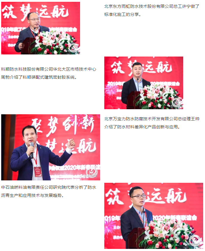 12月29日,由北京市建设工程物资协会防水分会、北京建筑防水行业诚信联盟主办,北京东方雨虹防水技术股份有限公司承办的2019年度工作会议暨2020年新春联谊会在北京召开。本次会议以“聚势创新,筑梦远航”为主题,围绕企业创新发展、协作共享的中心议题展开。