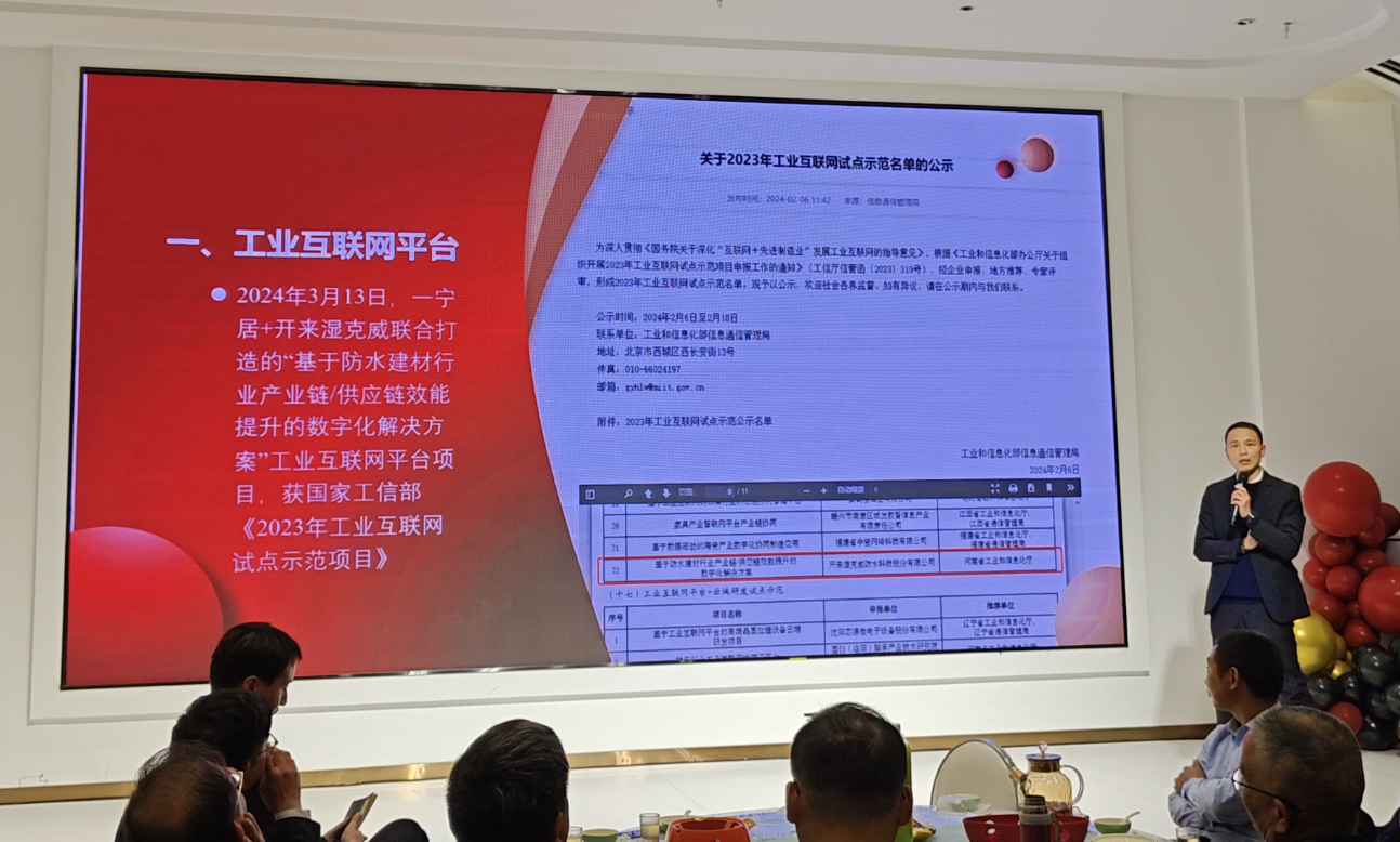 会议伊始,集团综合部冯治铭部长宣读了2024年度获工信部产业链/供应链工业互联网平台示点示范、防水卷材产品质量溯源、精益生产、新媒体业务、跨界工业漆等十大事件。